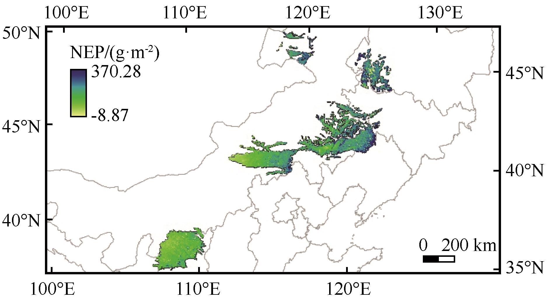 | 图2 2024年典型沙地净生态系统生产力(NEP)的空间分布 |