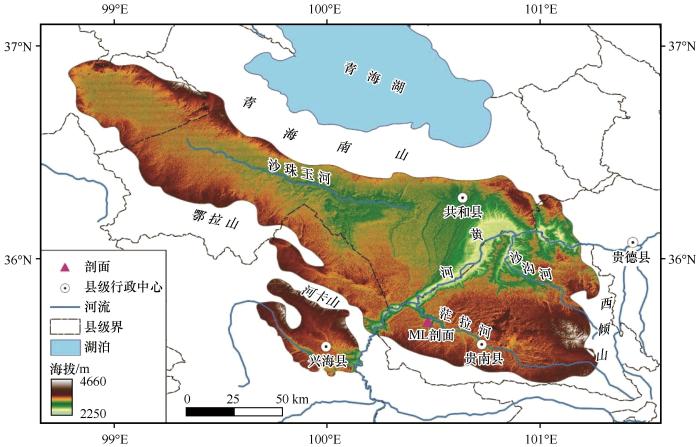 ... 共和盆地处于青藏高原东北部(35°27′—36°56′N,98°46′—101°22′E),为祁连山与昆仑山的过渡带.四面环山,东依西倾山,西邻瓦洪山,南靠河卡山,北隔青海南山与青海湖相望(图1).整体为西北-东南延伸,且西北高、窄,东南低、宽,海拔2 400~3 800 m.盆地属中国干旱与半干旱气候的过渡区域,为典型的高原大陆性气候,年均气温-10~15 ℃,年降水量250~400 mm[21],由于地形限制,降水由东南向西北递减.河流主要包括黄河、沙珠玉河等,补给来源主要为降水、冰雪融水.植被以草原、荒漠草原、高寒草原、荒漠植被为主.土壤具垂直地带性,自下而上依次分布有棕钙土、栗钙土、草原土和草甸土[22]. ...