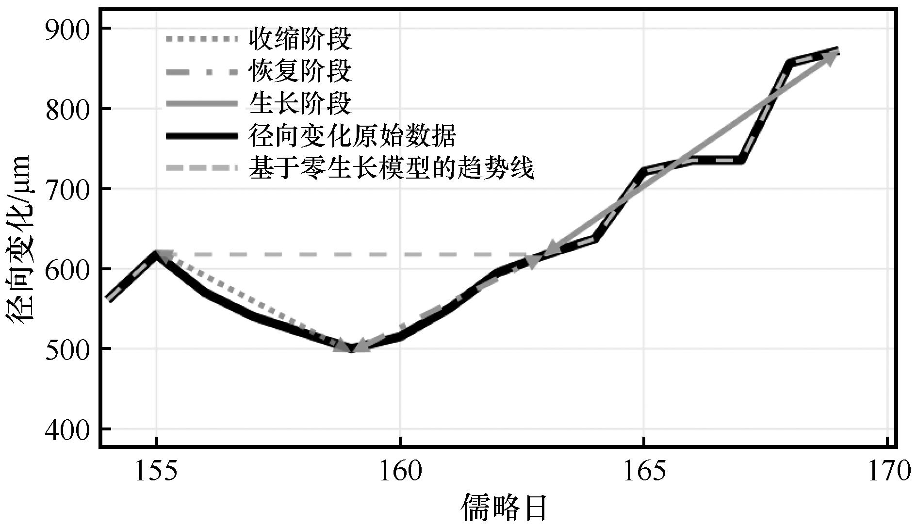 | Fig.2 Three stages of stem radial changes of Picea crassifolia |