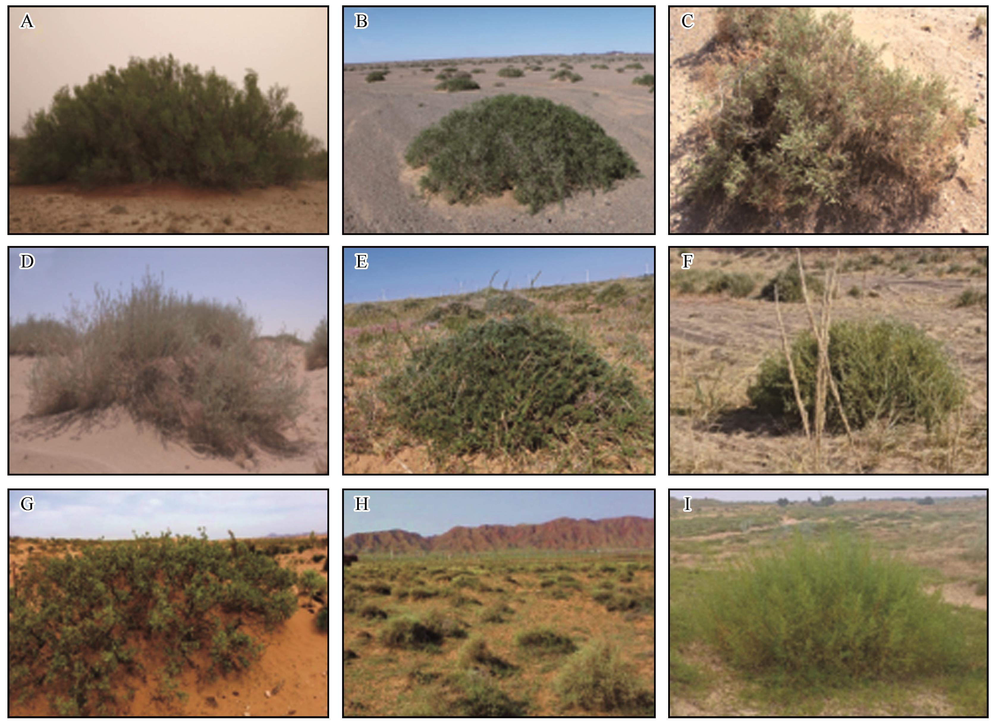 | 图1 中国北方干旱、半干旱区常见灌丛沙堆类型 |