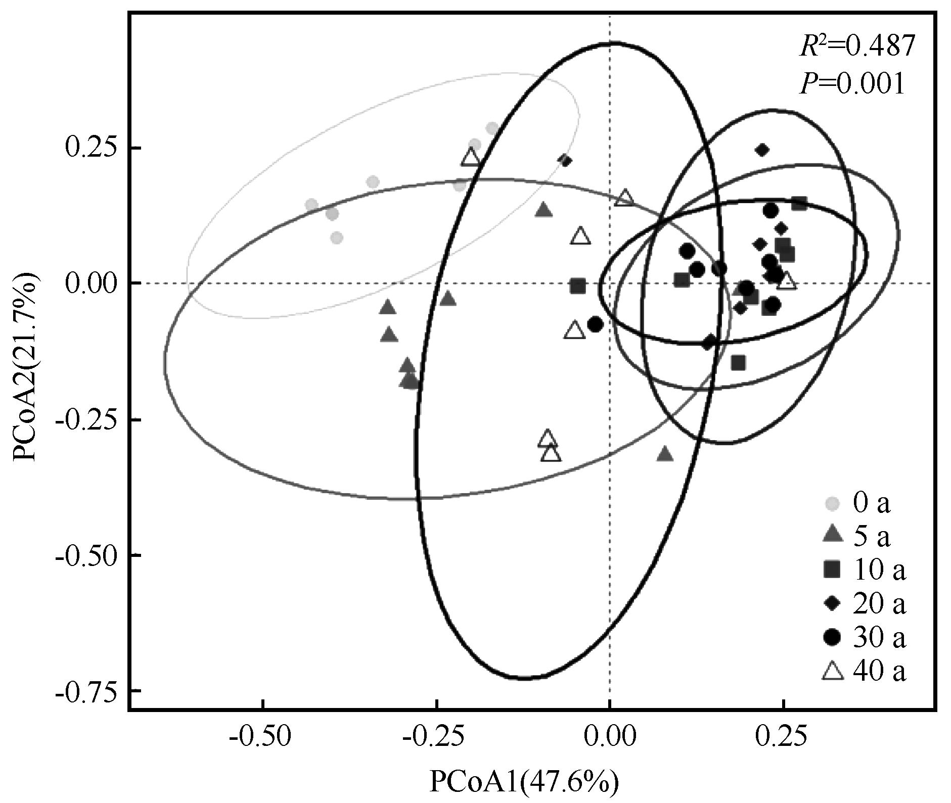 | 图3 梭梭林不同样地植物群落结构差异的PCoA分析 |