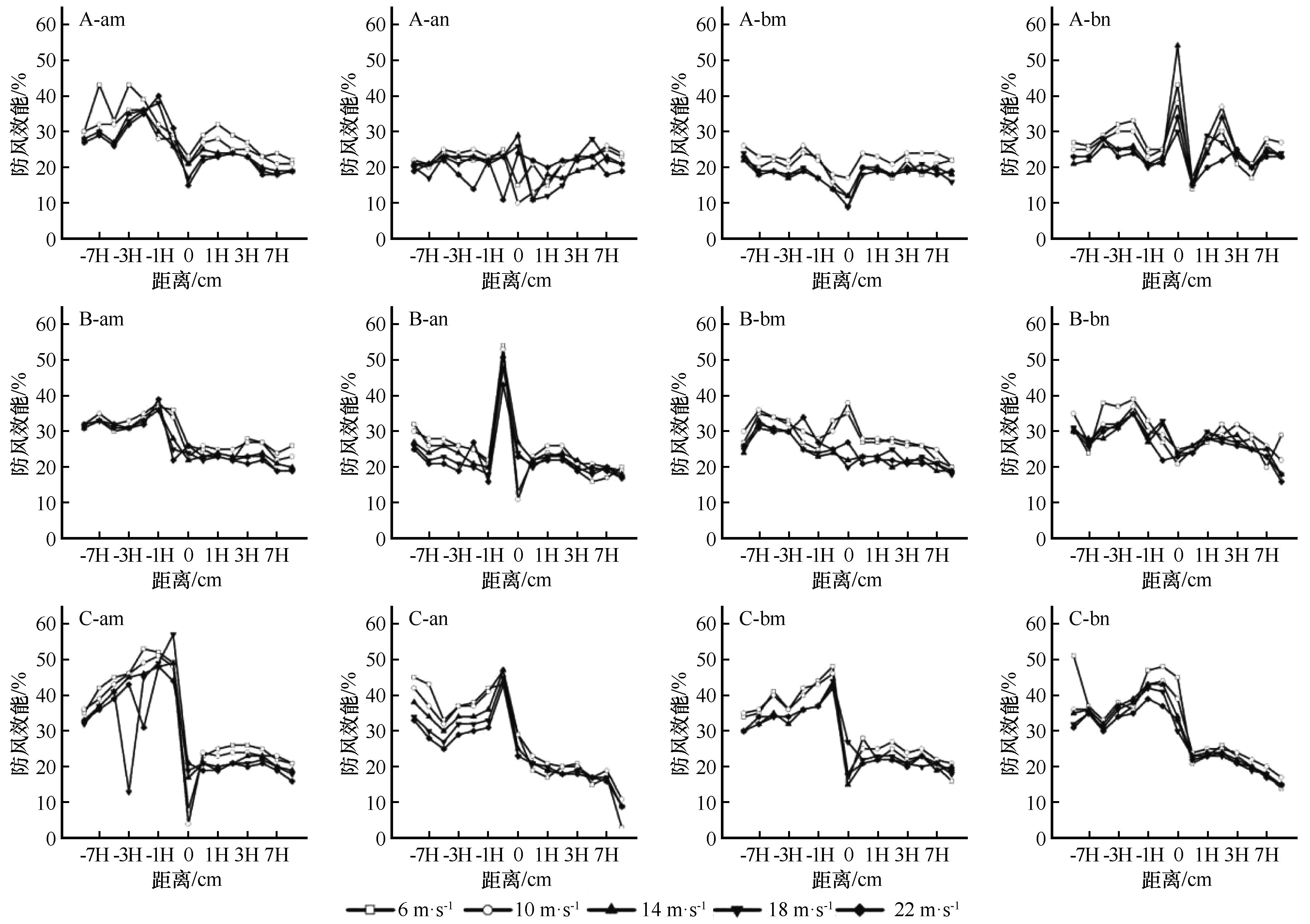| 图5 梭梭不同行带配置下防风效能 |