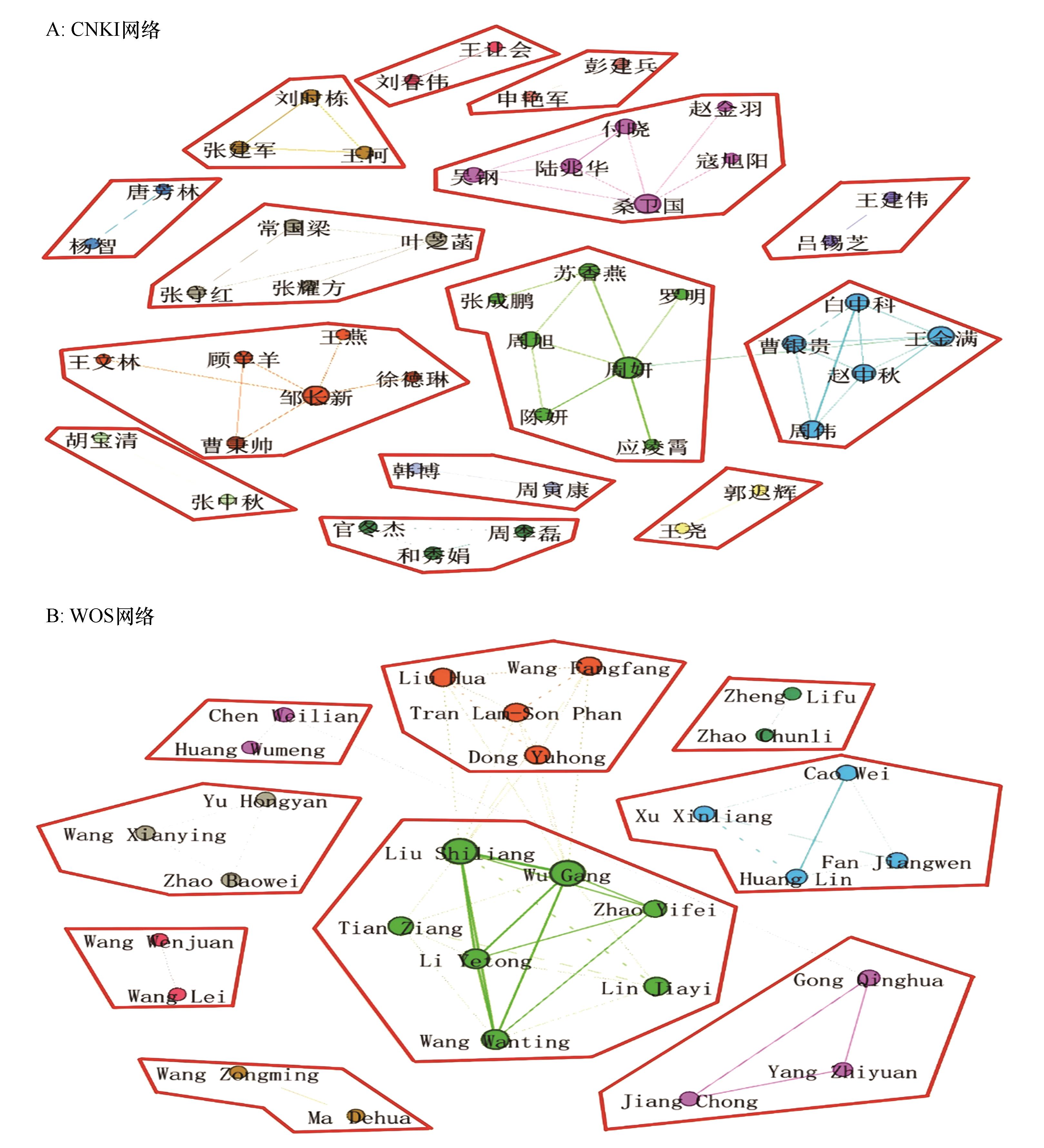 | Fig.4 Collaboration network of high-productivity authors in “mountains, rivers, forests, farmlands, lakes, grasslands, deserts” research |