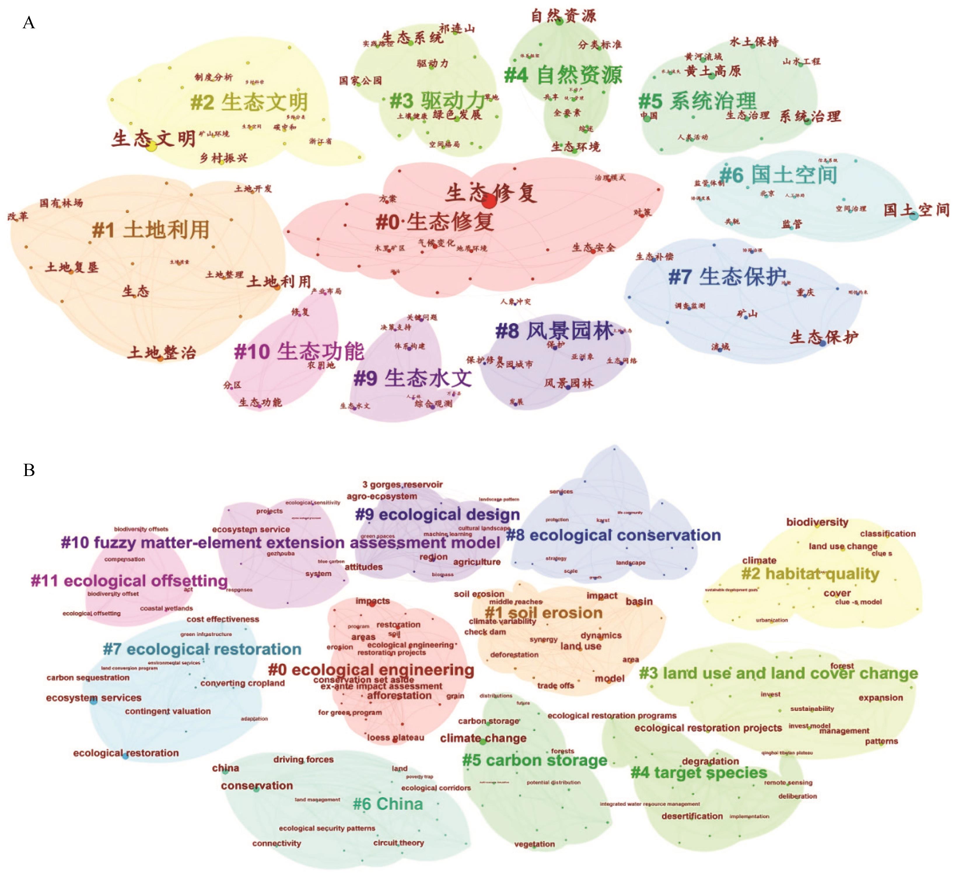 | 图6 山水林田湖草沙关键词共现聚类 |