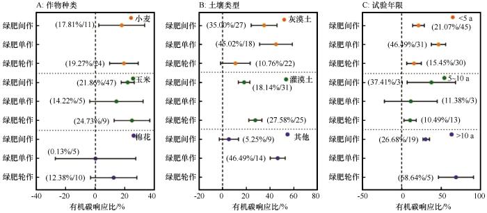 不同作物种类、土壤类型及试验年限下绿肥种植方式对土壤有机碳的影响