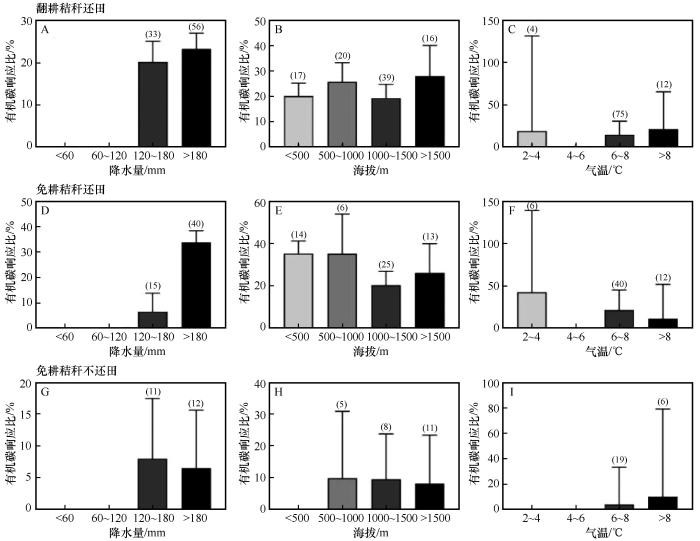 不同降水量、海拔、气温区间下耕作方式对土壤有机碳的影响