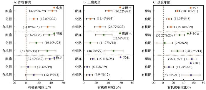 不同作物种类、土壤类型及试验年限下施肥方式对土壤有机碳的影响