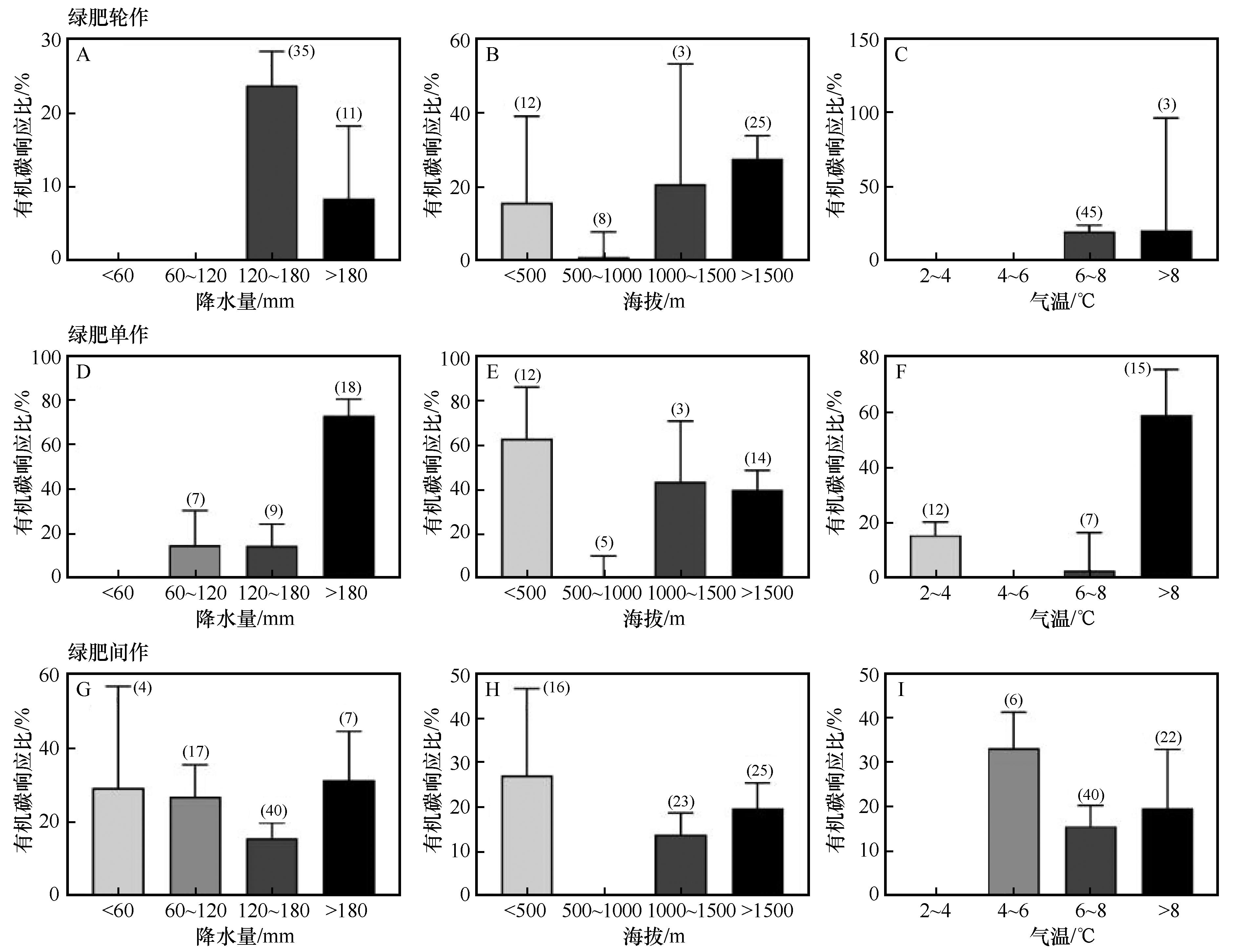 | 图5 不同降水量、海拔、气温区间下绿肥种植方式对土壤有机碳的影响 |