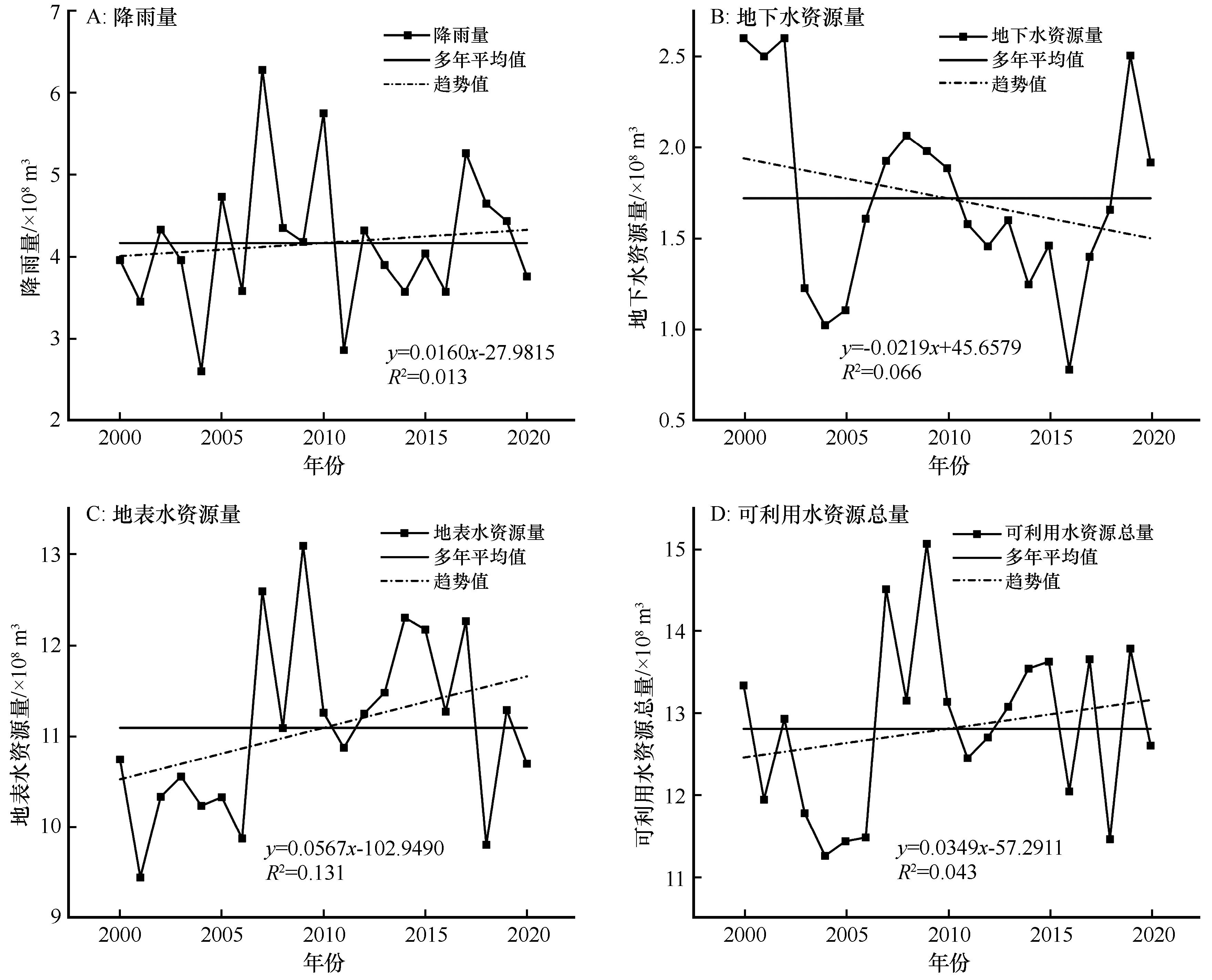 | 图3 2000—2020年张掖盆地降雨量与水资源量变化 |