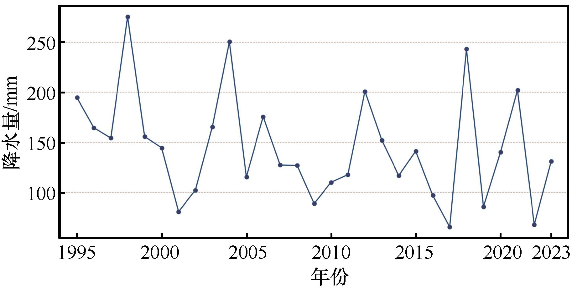 | Fig. 7 Average precipitation during May-September in the study area from 1995 to 2023 |