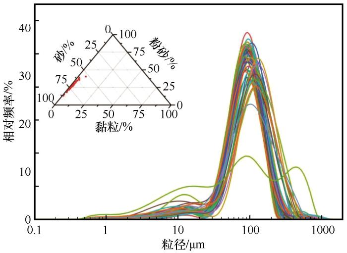 Grain size frequency distribution curve of Tamarix chinensis nebkha sediments