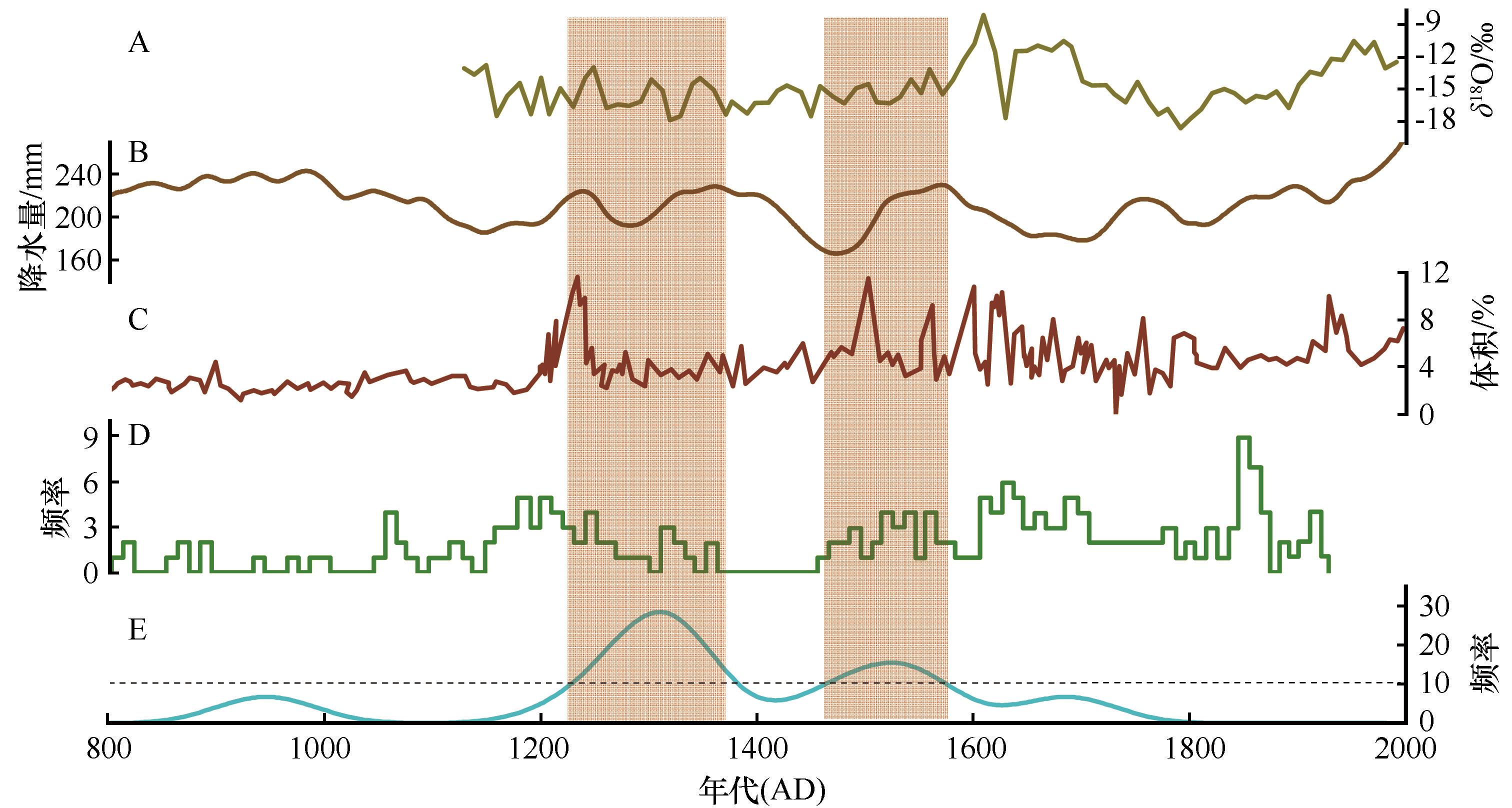 | 图8 大格勒灌丛沙堆形成年代及其气候背景 |