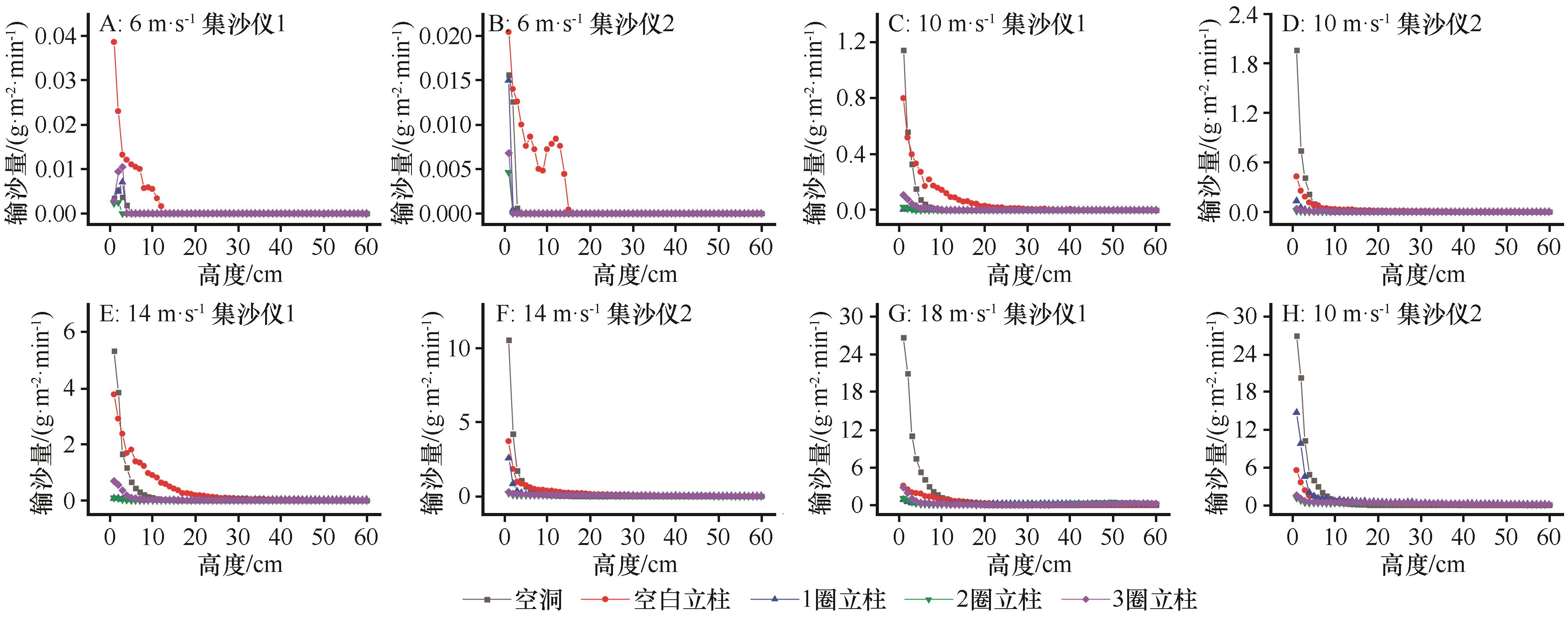 | Fig.7 Distribution of sediment flux density under different wind speeds |