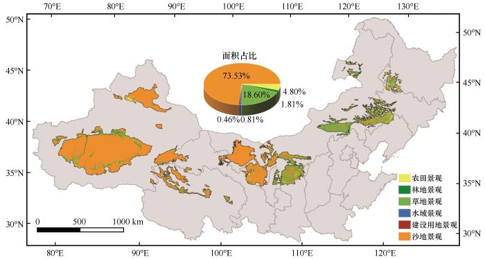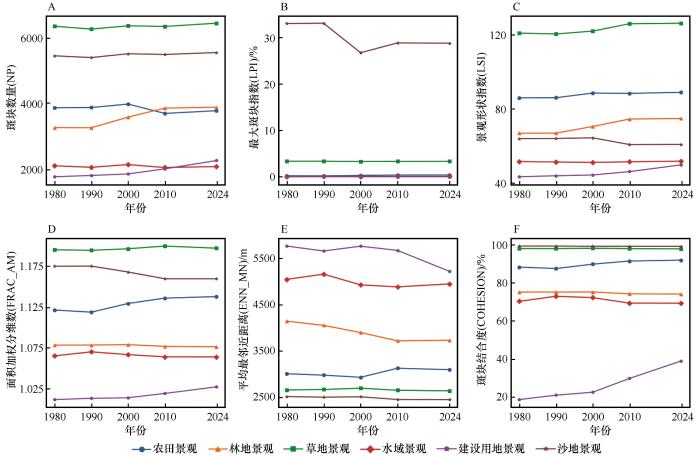 ... 从全球范围看,早期对沙漠景观演变的研究多关于非洲撒哈拉、中亚及北美等典型区域,为理解气候与人类活动对沙漠系统的驱动机制提供了重要理论与案例支撑[14-16],而国内研究虽在北方沙漠地区积累丰富,但区域选择呈现个案化与热点化倾向,多数聚焦于生态工程效益显著或环境问题突出的沙地,如毛乌素、松嫩等沙地研究关注沙漠化逆转与治理效果[17-19]、科尔沁、浑善达克沙地侧重治理模式[20-21],塔克拉玛干沙漠多探讨绿洲-荒漠交错带的水资源约束与沙域扩张[22-23],古尔班通古特沙漠则聚焦其对气候变化的独特响应[24].这些研究为揭示局部驱动机制与治理路径提供了重要依据.然而,目前研究存在明显不足:一方面,现有研究多局限于单一沙漠或行政区单元,受自然背景与人类活动区域异质性影响,结论难以推广至整个沙漠地区,缺乏从宏观尺度系统揭示景观演变共性规律与区域分异的研究[25-26];另一方面,即便在区域案例中,景观格局指数方法在长时序系统分析中应用仍不充分,部分研究未能充分发挥其优势,或仅停留于面积变化的表象描述,未能深入揭示景观时序演变的内在规律[27-28].鉴于此,为系统揭示中国沙漠地区景观演变规律,本文基于1980—2024年Landsat系列卫星影像,精确提取沙漠地区各期景观类型信息,运用景观生态学方法,构建涵盖类型水平与景观水平的格局指数体系,定量刻画沙漠地区景观时空演变特征规律,以期为区域生态可持续管理及国家沙漠化防治工程的精准施策提供数据支撑与科学依据. ...