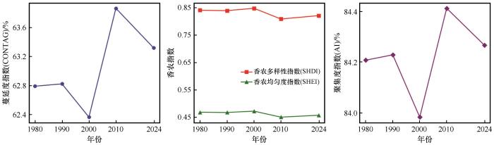 ... 景观格局演变研究核心在于量化地表覆被的空间异质性及其时空动态[5].目前,遥感技术与景观生态学理论结合已成为主导研究范式[6].数据源方面,早期多依赖AVHRR等中低分辨率数据,虽可反映宏观趋势,但对景观细节识别有限[7];随着Landsat、Sentinel-2等中等分辨率数据的开放,为长时序、高精度景观分类与动态监测奠定了基础[8].分类方法也从传统光谱分类发展为面向对象分析(OBIA)及随机森林等机器学习方法,提升了对半固定、固定沙地等复杂下垫面的识别精度[9-10].景观格局指数通过将空间结构转化为统计指标,成为比较区域景观特征的重要工具[11].然而,尽管技术方法日趋成熟,但现有研究在长时序沙漠景观分析时仍存在局限:时间上,部分研究时段较短或仅选取节点对比,缺乏对20世纪80年代以来涵盖关键政策与气候阶段的连续追踪,难以完整揭示演变过程与阶段性特征[12];方法上,部分研究偏重面积变化而忽视空间格局的深度量化,或景观指数选用单一,未能从类型与景观水平构建综合指标体系,限制了从破碎化、连接性、多样性等多维度系统揭示景观演变规律的能力[13]. ...