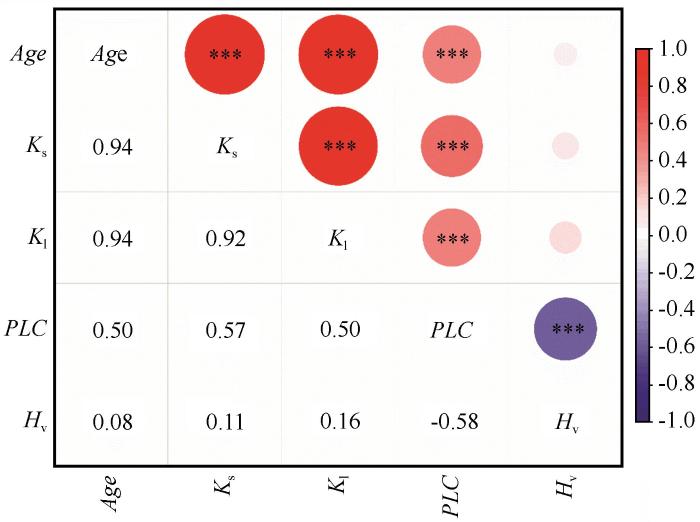... 在腾格里沙漠人工植被生态系统中,柠条的水力结构特征随建植年份的变化,不仅反映了植物个体对环境的适应策略,也影响着整个植被系统的稳定性与可持续性[22].本研究通过对不同建植年份柠条关键水力参数的测定,揭示了其水力功能随植被演替的动态变化规律,并深入探讨了这些变化背后的生理生态学机制及其在干旱适应中的意义.研究发现,柠条的茎水力导度(Kₛ)和叶水力导度(Kₗ)均随植被演替呈现出显著的下降趋势.水力导度下降直接限制了植物从土壤中吸收水分并供应叶片的能力.这与全球范围内对多种木本植物的研究结果一致,被认为是植物衰老过程中的一个标志性特征[27-29].在人工植被建植早期,柠条为了快速生长和占据生态位,可能维持较高的水力导度,以支持旺盛的光合作用和生物量积累.但随着年龄增长,尤其是在土壤水分被持续消耗、环境胁迫加剧的情况下,维持高水力导度的成本过高,进而采取更为保守的水分利用策略,从而导致水力导度的主动或被动下降[30].随着植被的演替,柠条木质部结构也有可能出现衰退.如导管直径减小、纹孔密度降低、纹孔膜厚度增加等均会显著增加水分在导管间传输的阻力,从而进一步降低整株植物的水力导度[31].此外,演替阶段后期,柠条木质部中次生代谢产物(如酚类、树脂等)的积累也可能对水分传输构成物理性阻碍[32]. ...