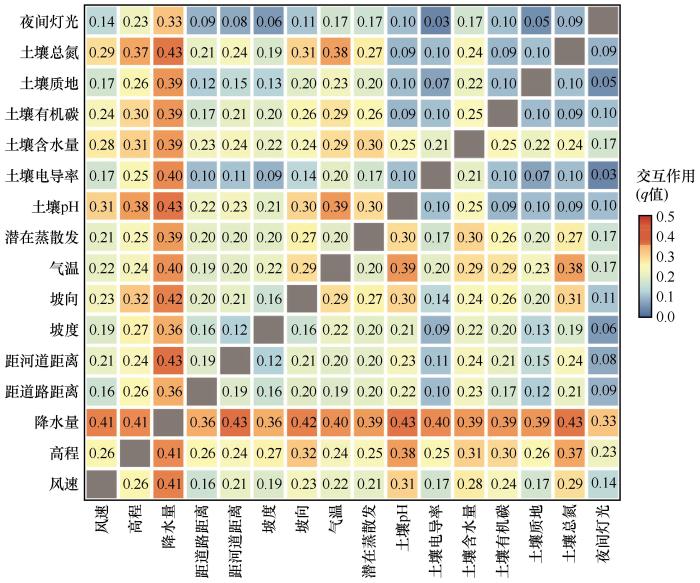 ... 地理探测器被用于探测空间分异性及其驱动因素,核心思想是自变量与因变量的空间分布应呈现相似性[45].主要优点是能够处理大规模空间数据并且不依赖于传统的线性假设,适用于各种类型的空间数据分析.本文利用因子探测和交互探测,分析气温、降水量、风速、潜在蒸散发、距河道距离、高程、坡度、坡向、土壤质地、土壤含水量、土壤有机碳、土壤总氮、土壤pH、土壤电导率、夜间灯光和距道路距离16个因子对研究区植被覆盖度空间异质性的解释程度. ...