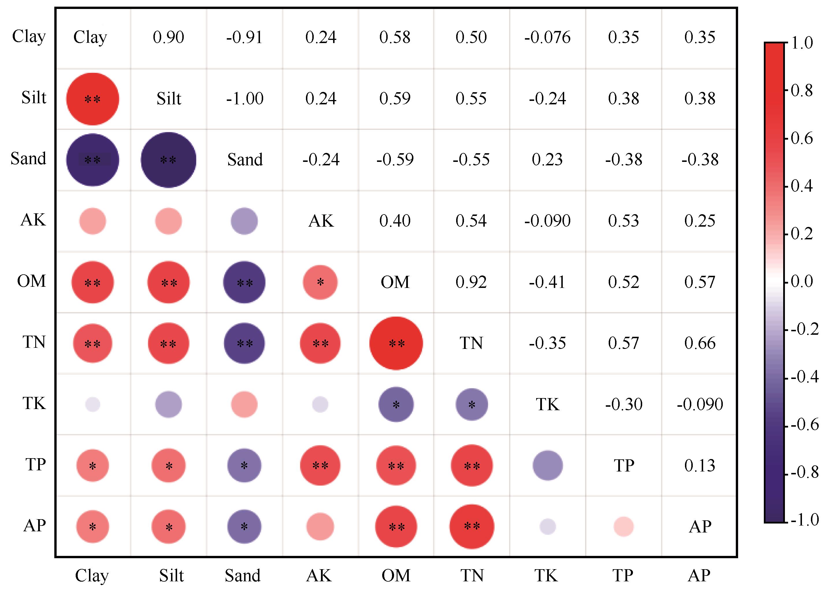 | Fig. 3 Correlation analysis matrix of soil quality evaluation index |