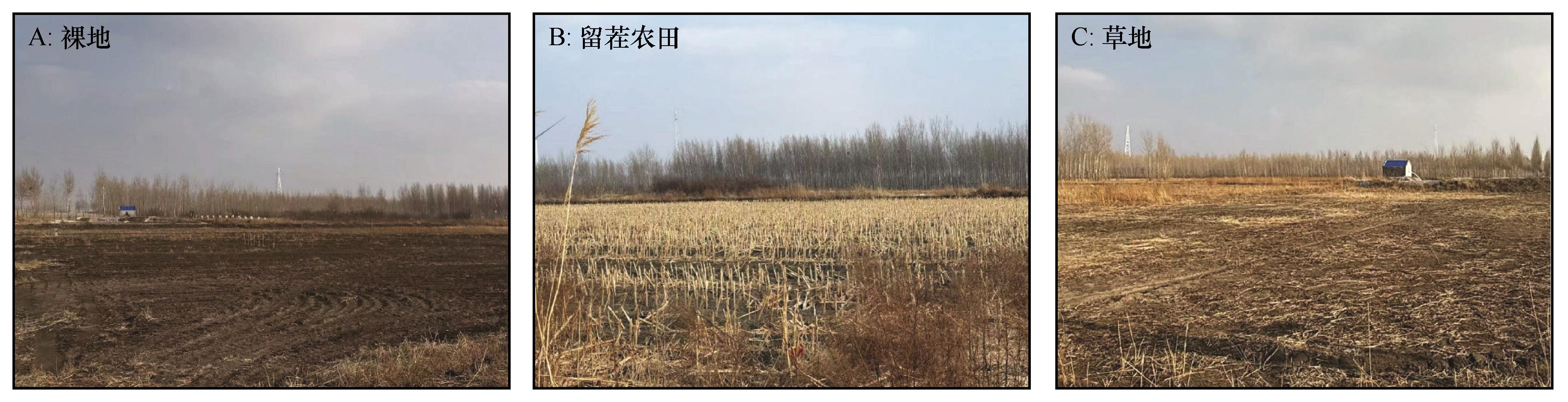 | Fig.2 Overview of bare land (A), stubble-retention farmland (B), grassland (C) |