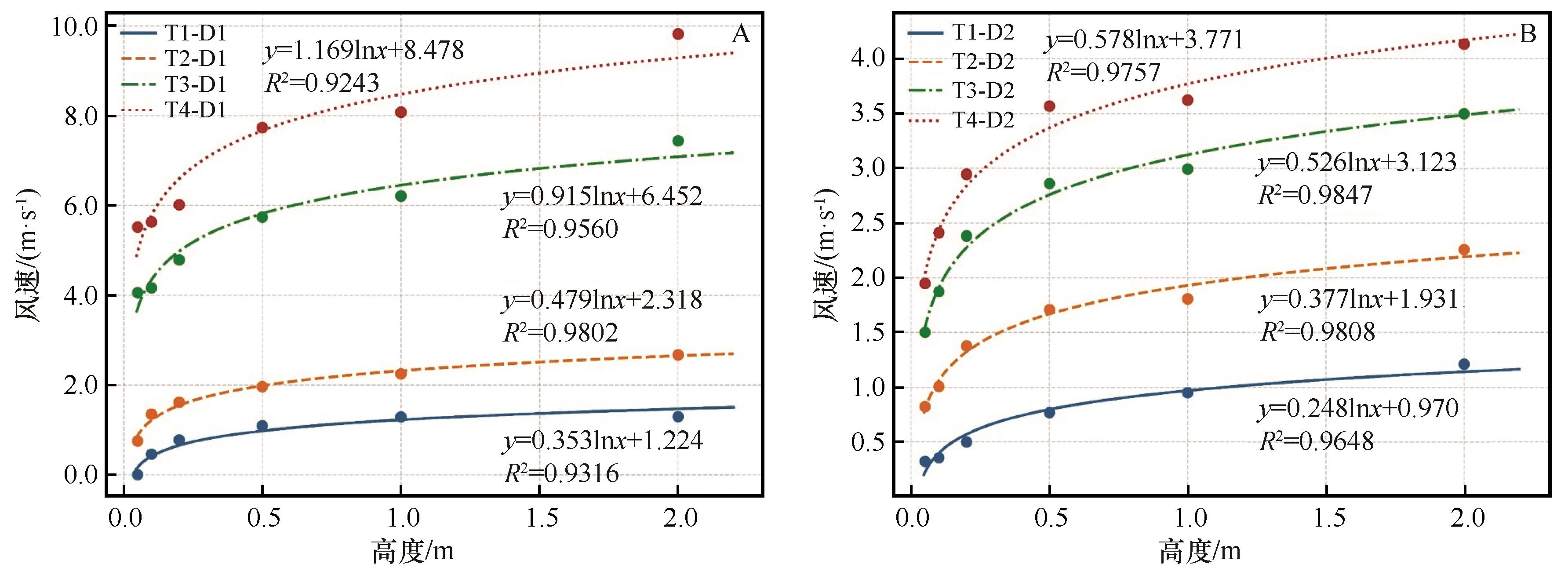 | 图15 D1、D2在4个相同时间间隔内的风速廓线变化 |