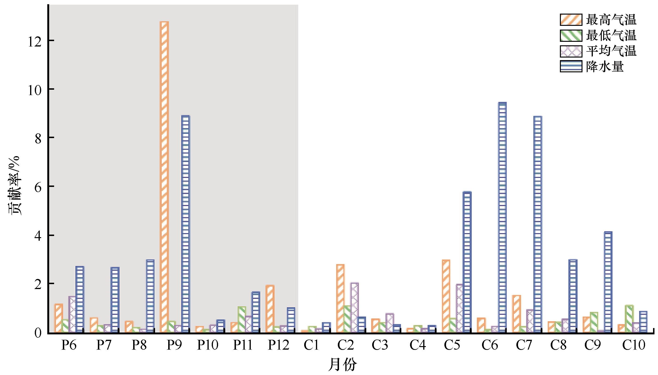 | Fig.4 Relative influence of meteorological factors for the tree-ring residual chronology |