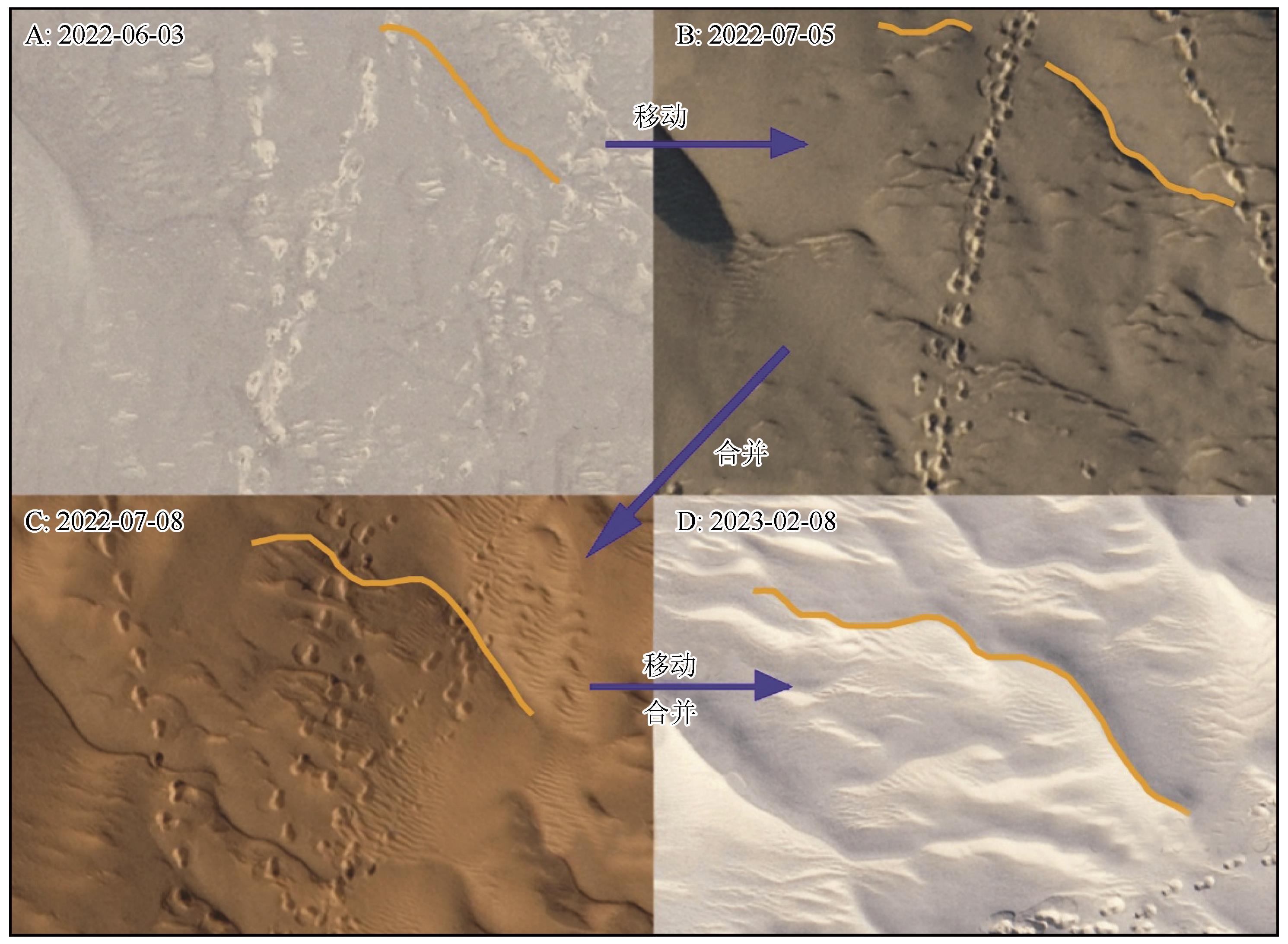 | Fig.3 Merging and migration of granule ripples crest lines |