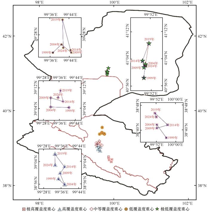 1999—2024年黑河流域各等级覆盖度植被重心分布