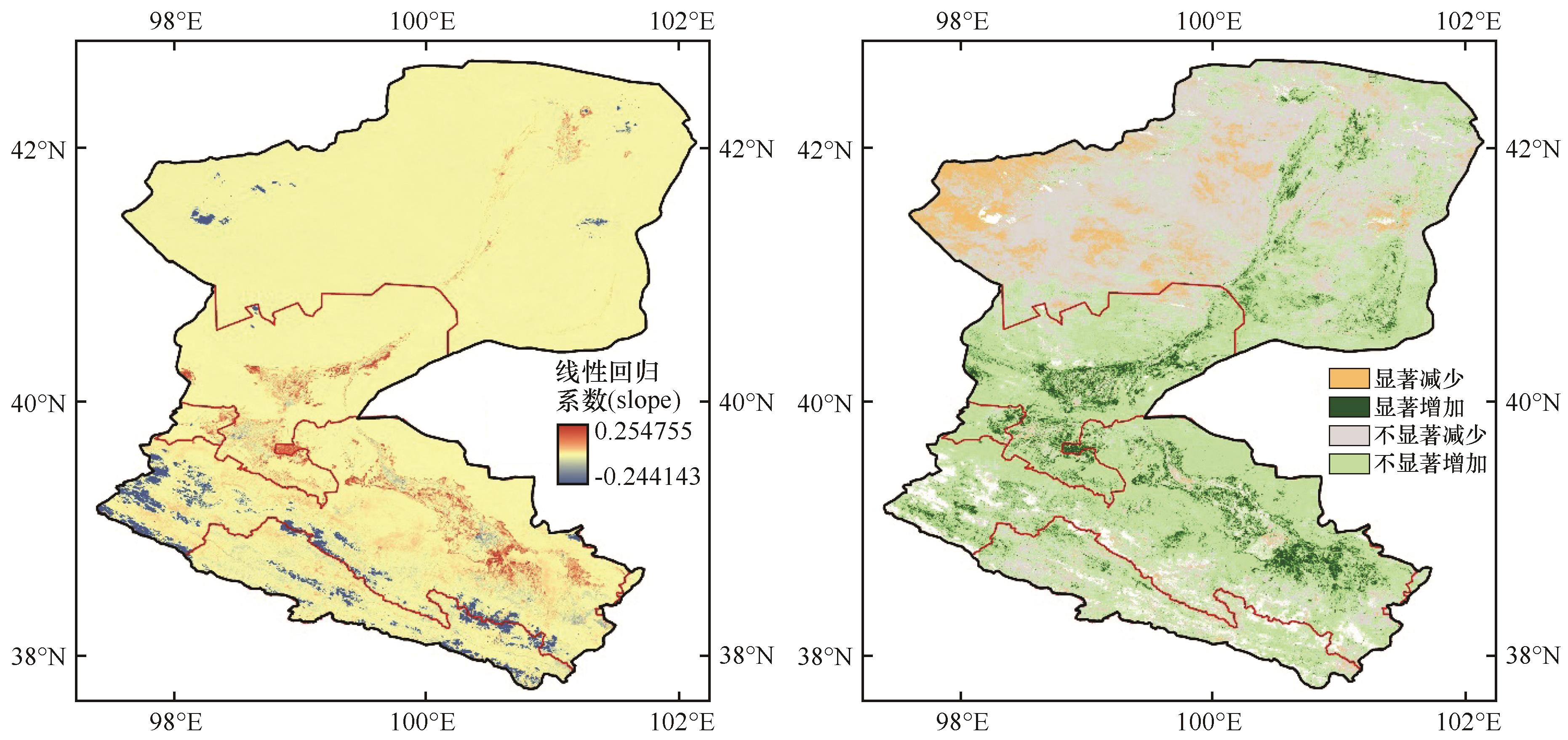 | 图4 1999—2024年黑河流域植被覆盖度变化趋势空间分布 |