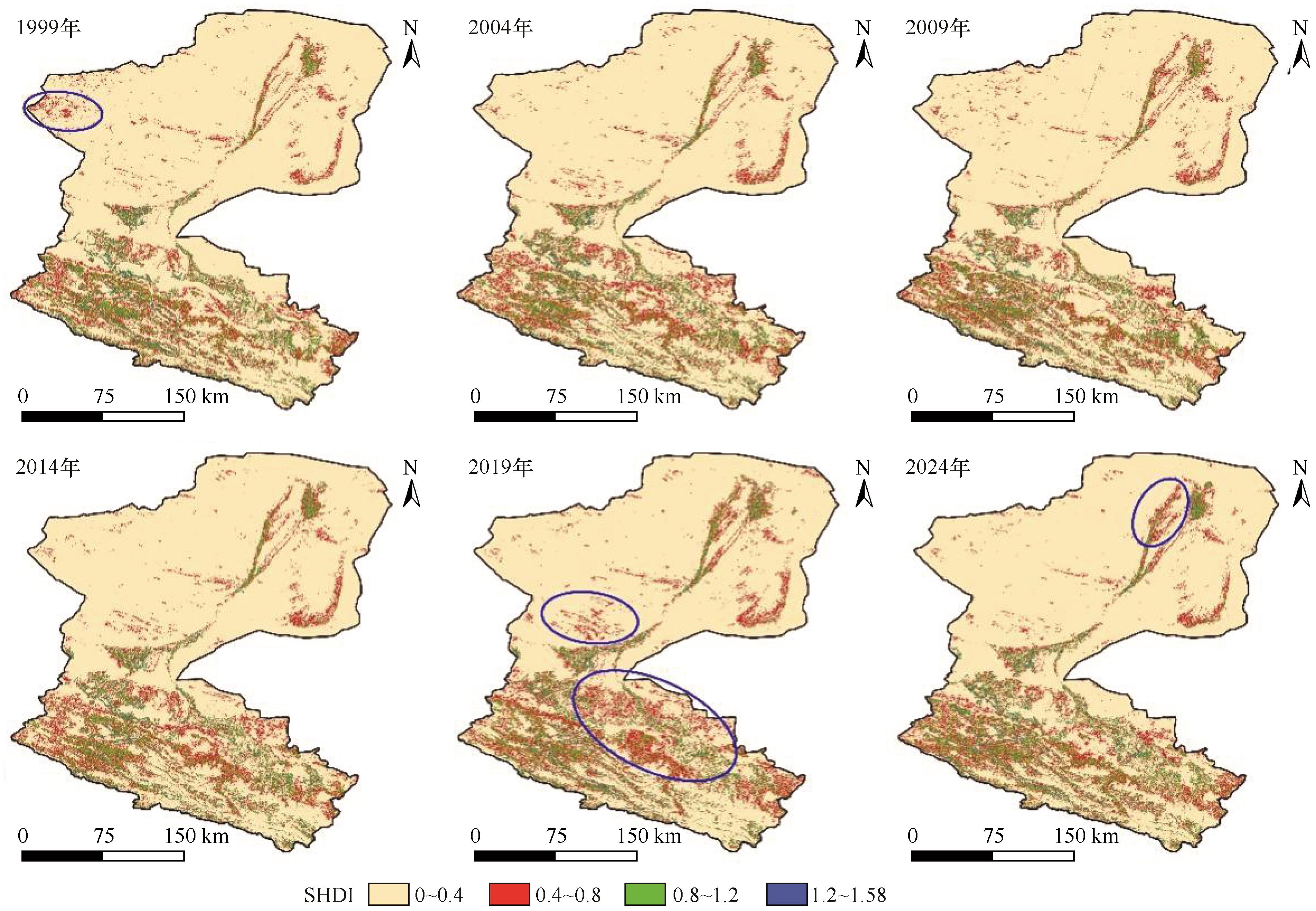 | Fig.7 Spatial distribution of SHDI values in the Heihe River Basin from 1999 to 2024 |